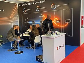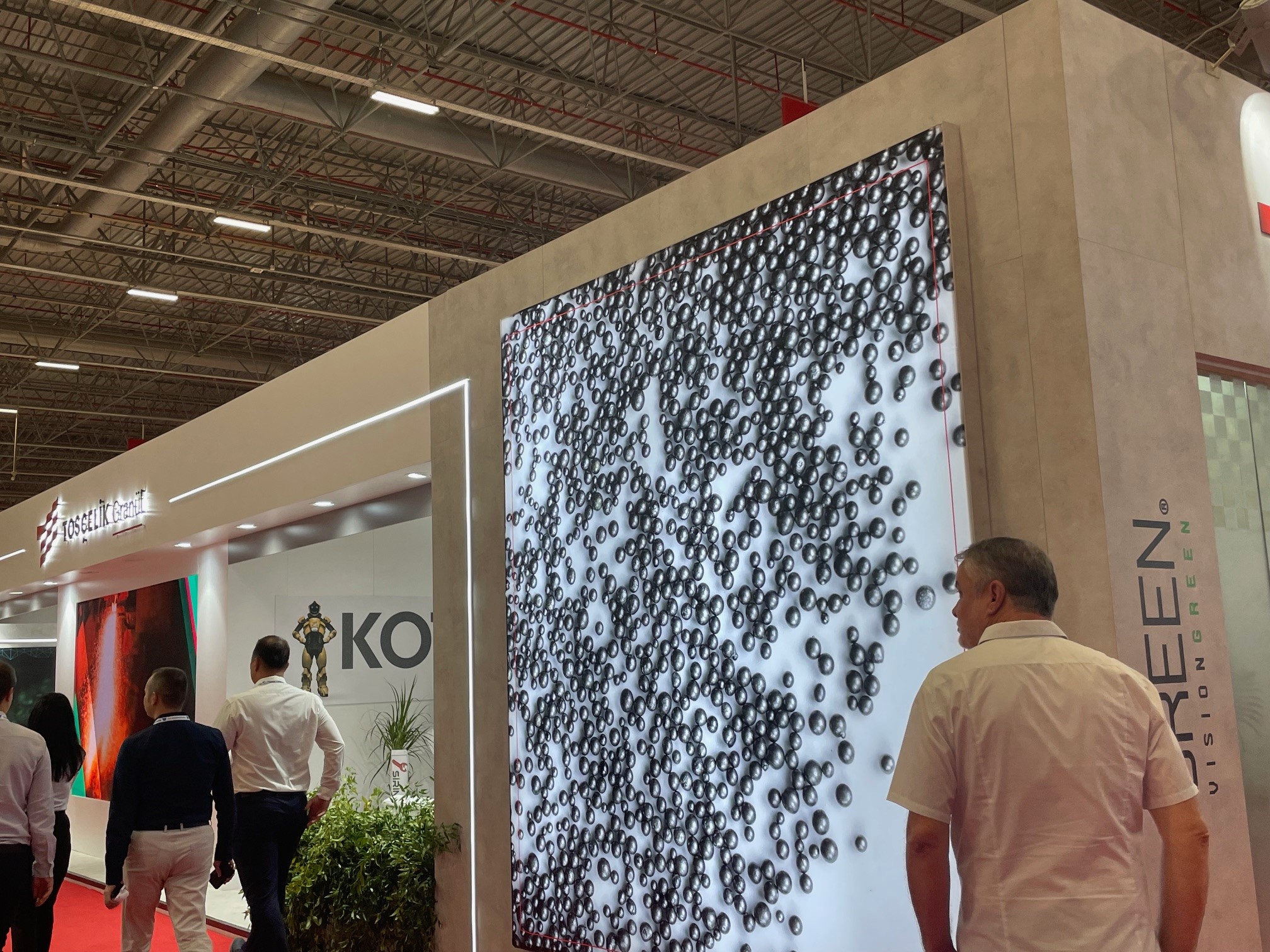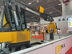 Andere Aussteller sind in ihrem Auftritt fast in den 1980ern stehengeblieben: Viele Fotos aus der Produktion schmücken die Wände der Stände, mächtige Maschinenteile sind zu sehen. Man darf den Baggergreifarm auch mal selbst bewegen! Was viele mit Begeisterung tun – Träume werden wahr! Andere Stände hingegen wirken fast avantgardistisch: Sie zeigen Mood-Bilder und sehr modernes Corporate Design in Grafik und Farbgebung. Diese fallen tatsächlich ins Auge, erfordern jedoch immer Erklärungen. Die ergeben sich dann im Gespräch ...
